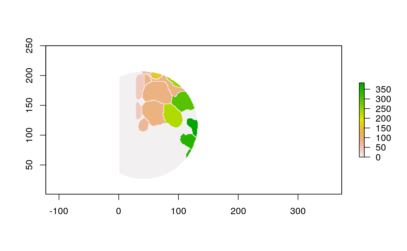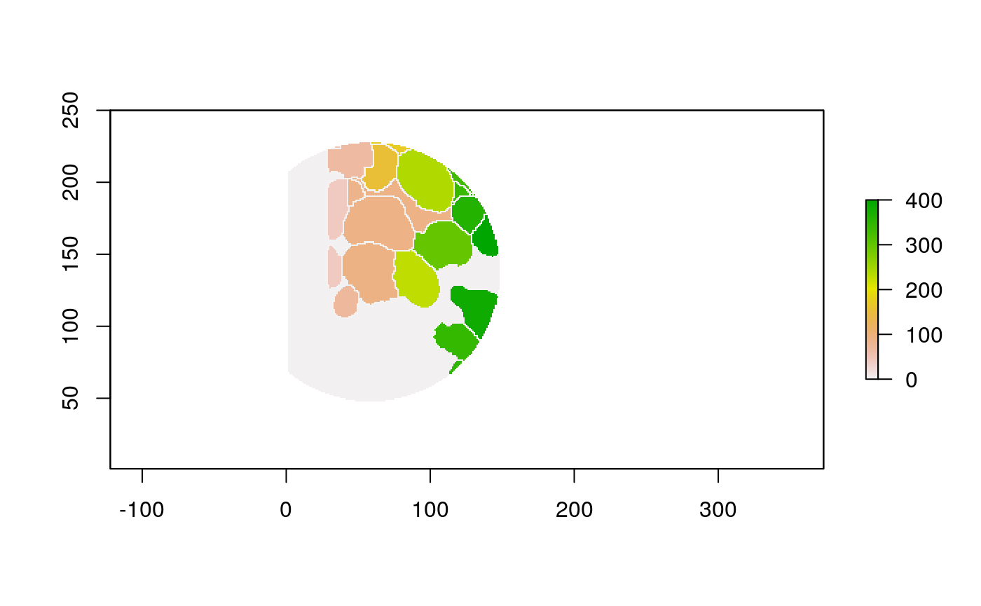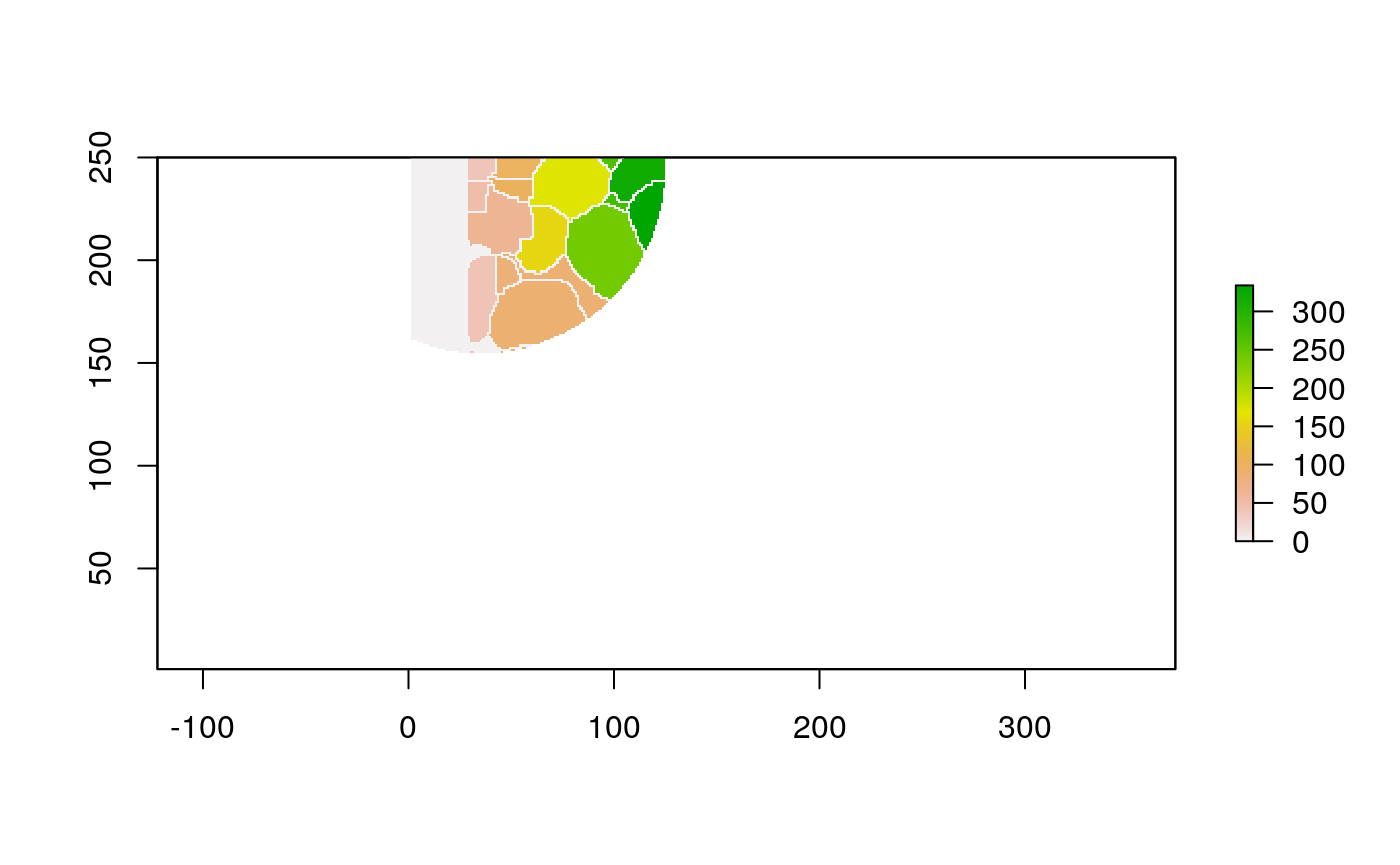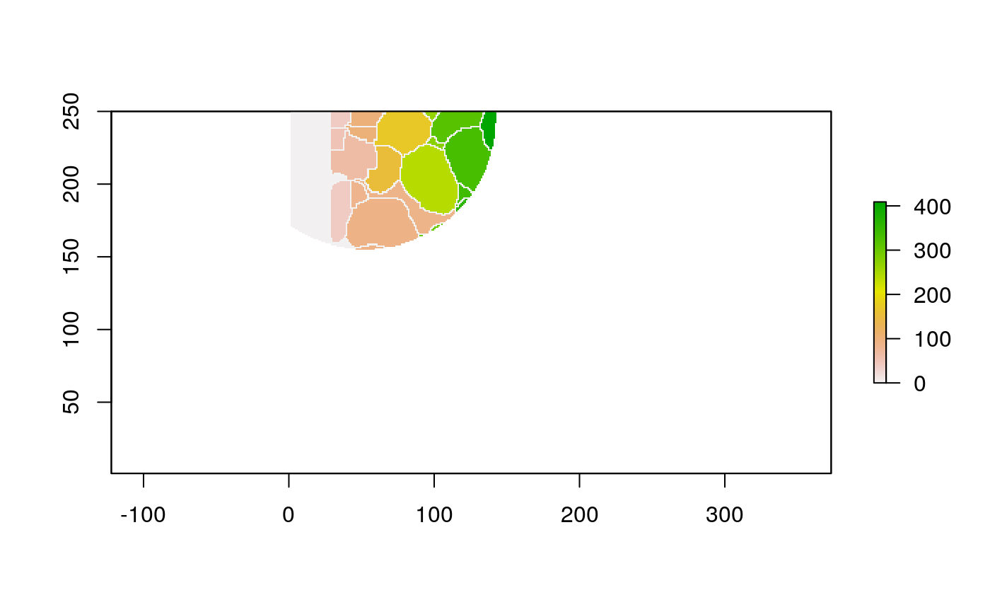 polys <- polygonize(im) %>% inner_join(cell_data) %>% group_by(cellLabelInImage) %>% # some regions get split into two adjacent polys --> merge inner_join(cell_data) %>% group_by(cellLabelInImage) %>% summarise_all(function(x) { x[1] })