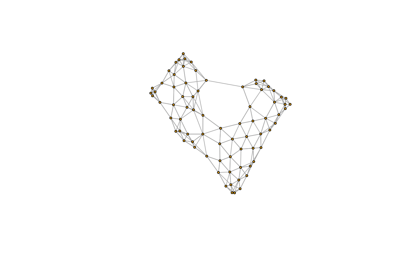 G <- extract_graph(polys) plot(G, vertex.size=3, edge.arrow.size=0, vertex.label=NA)